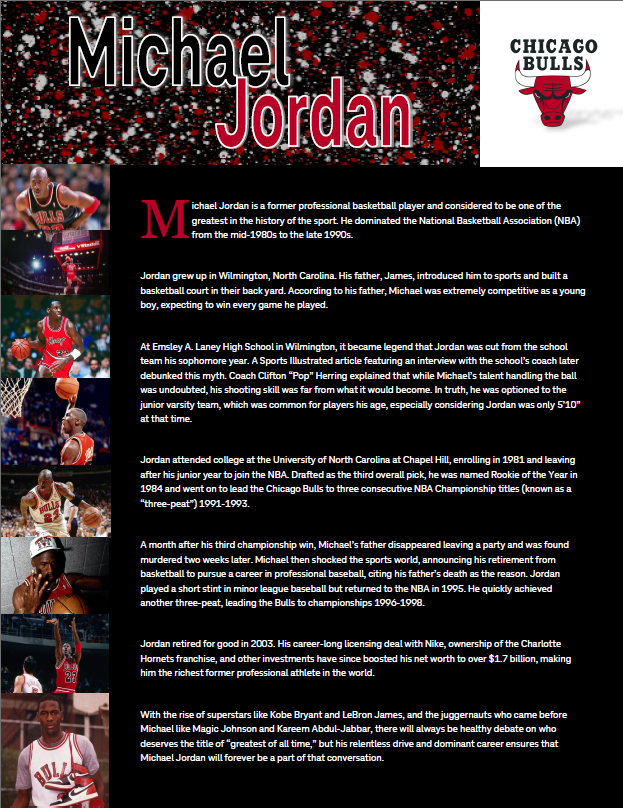 Bio on Michael Jordan. I designed and wrote everything here.